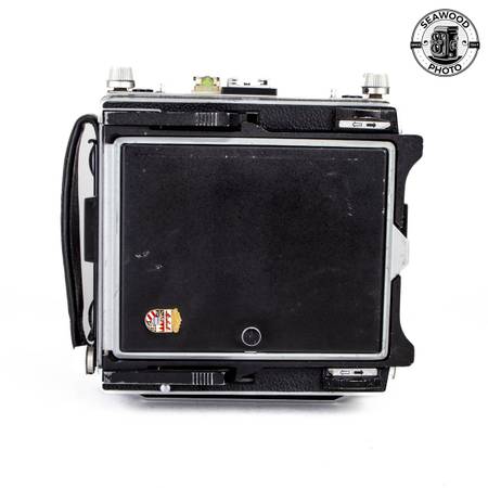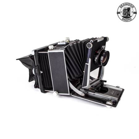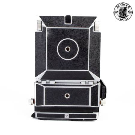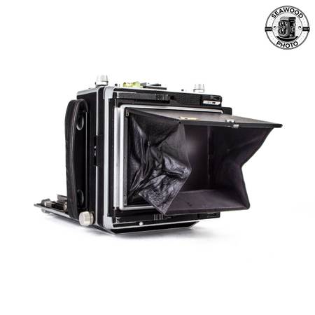 Accessories available (but not included) include a left-handed anatomical grip, a "winkelspeigel" reflex viewing hood that rights the image on the ground glass and negates the need for a dark cloth, 6x9 120 roll film backs, and more