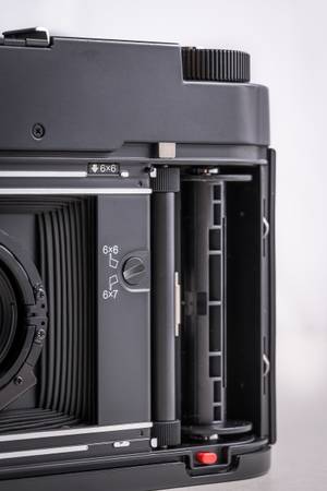 I have a genuinely mint Fuji GF670 Medium Format 6x7 camera. This camera came in both silver and black, and in standard and wide angle versions. This is the standard version with the 80mm f/3.5 lens. This camera does have a switch that allows you to switch from 6x7 aspect ratio to shooting 6x6 aspect ratio. This camera is about as close to brand new as I've ever seen. I am including the original Fuji leather carrying case as well as the detachable lens hood as well. I think the photos should speak for themselves, in that this camera really is just that nice. I paid a premium for this mint example as you can imagine, and so I believe my asking price is quite fair for such a ridiculously nice camera. Thank you for checking out my post and happy shooting out there!