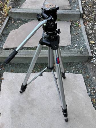 Bogen/Manfrotto 3036 Chrome Tripod w/ 3063 Heavy-duty Professional Fluid Video Head, the outfit has some cosmetic scuffs and minor scratches from normal use, but otherwise well-kept. All 3-section legs and adjustable leg braces/struts are in good working order, as is the crank-operated center column. In compact mode it is about 33” H but when fully extended - legs and center column – it reaches 81." The 3036 can go MUCH lower because the legs can be adjusted individually, to spread almost straight out. With that feature, along with inverted centerpost, it can go down to about 16” H. The 3063 Fluid Head includes the standard hexagonal Bogen Quick Release plate and silver Pan Bar handle. The head has friction control to damp the rate of tilting and panning. The head is in good working condition and moves smoothly. Used 3036 leg assembly and the 3063 head in good used condition, each retails on-line in the $200-range, $400 total, a bargain here for the combined outfit, available here for local pick-up in San Rafael, cash, Venmo, or PayPal.