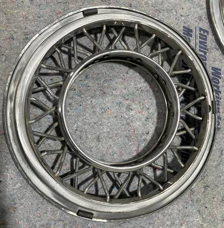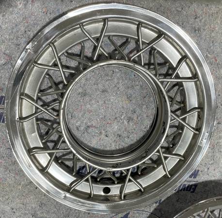 This listing is for a set of 4 OEM GM Cadillac Wire Spoke Accessory Hubcaps with 4 center caps and 2 mounting adapter plates. The center caps have a raised crest. I only have 2 of the mounting brackets / adapter plates, which have a 5 X 5 bolt pattern.