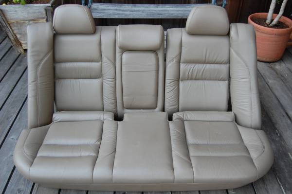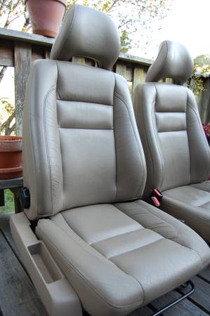 Set of seats from a 1995 Volvo 850 GLT sedan. The set includes the power driver's seat, manual passenger seat, rear seat and bolsters, and matching lid for console storage with pull out cup holders. All are in very good condition but there are a couple weak spots on the back seat as shown in the photo.