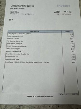 Ford 428 police special all new Pistons bearings rings machine shop have paperwork 0,60 bore short block also have 1967 -1969 390 GT’s renovated 1968/1970 428 cobra jets coming up for sale soon have Cobra Heads have GT Heads. Let me know what you need.