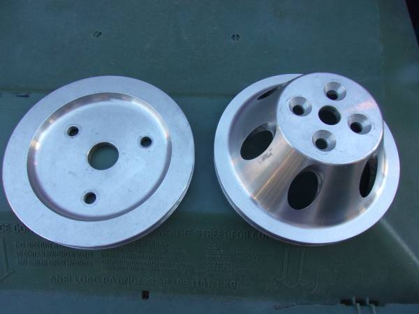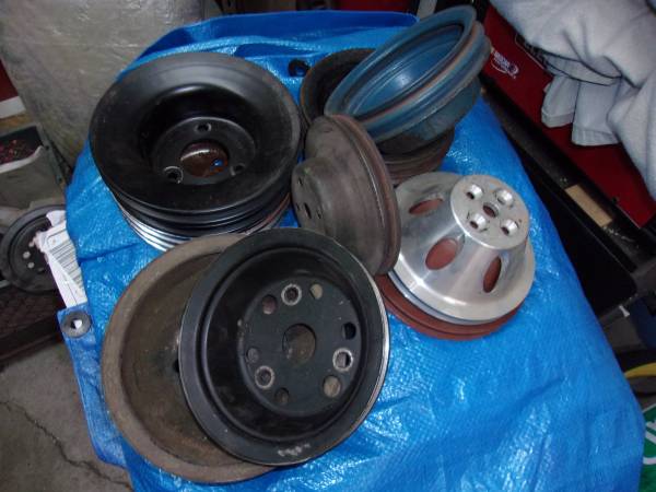 I have some miscellaneous 1,2 & 3 groove water pump pulleys that I don't need anymore. $10.oo ea. I also have more Crankshaft and water pump pulleys. If you need one, I may have what you need. I will sell all the pulleys at one time for a $100.oo I have some Billet and Chrome pullies also for Chevy.
