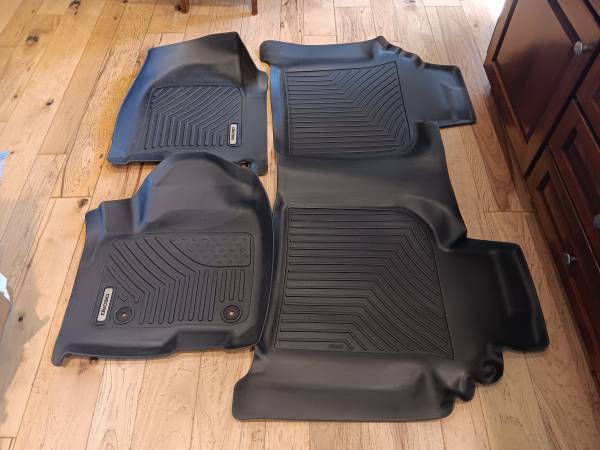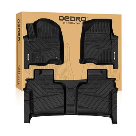 NEW IN BOX OEDRO Floor Mats Fits for 2019-2025 Chevy Silverado /GMC Sierra 1500 & 2020-2025 Chevy/GMC 2500HD/3500HD Crew Cab W/ Rear Underseat Storage Box, Front Bucket Seat. Floor liners set ade of high-strength TPE material, non-toxic and odorless. Snap-in Clips and 3D Extended Border for all weather condition protection. *** Oedro Sale Price $116.99 ***
