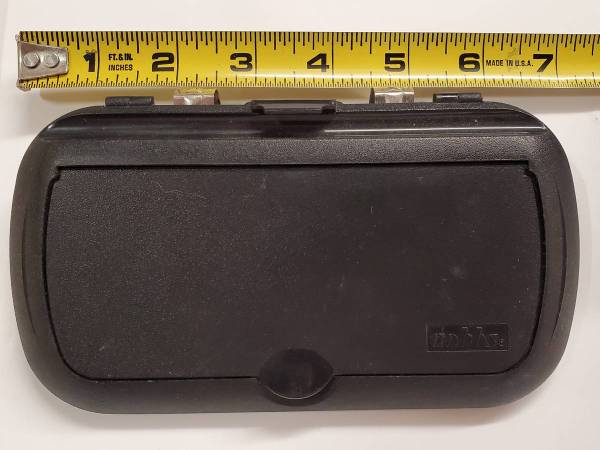 The mirror clips on to the Sun visor. The batteries are dead I think only one of the lights works. Otherwise in good condition.
