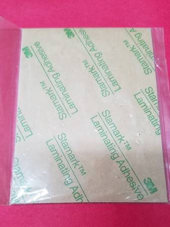 Has adhesive backing with protective paper still in place.