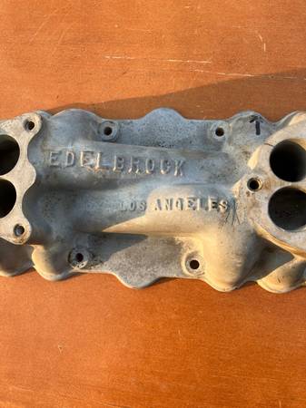 This is a vintage Edelbrock intake manifold for early flatheads.