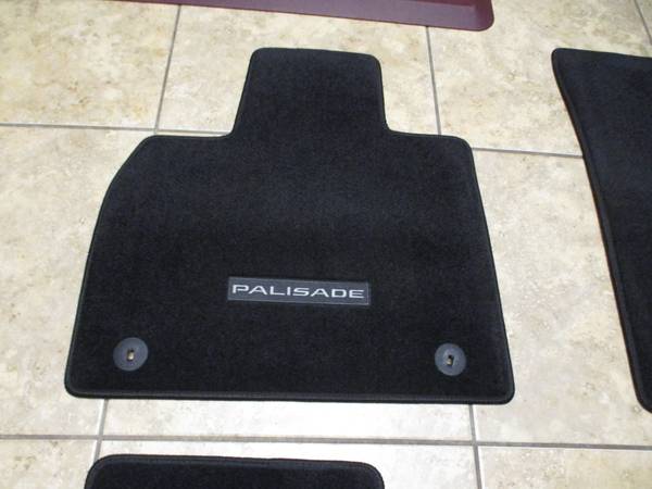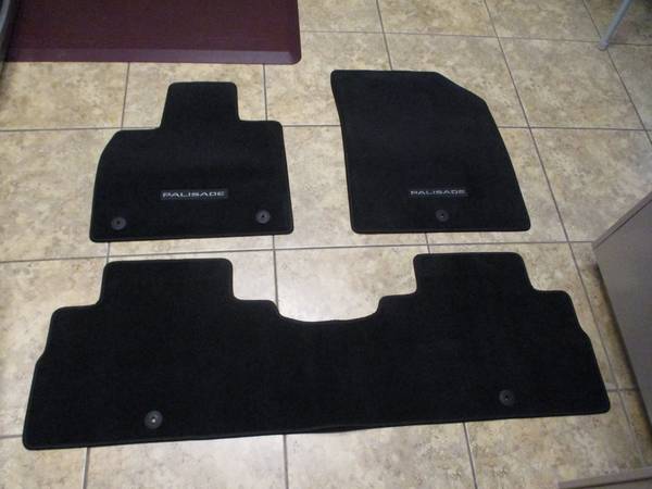 This is a set of genuine Hyundai carpeted floor mats made to fit the 2020-2025 Palisade models. They have never been used and they are in new condition with no odors, stains or wear of any kind. These are not cheap aftermarket mats. I do not have the mat for the 3rd row. I am asking $75.00 cash. TEXT or email are best show contact info