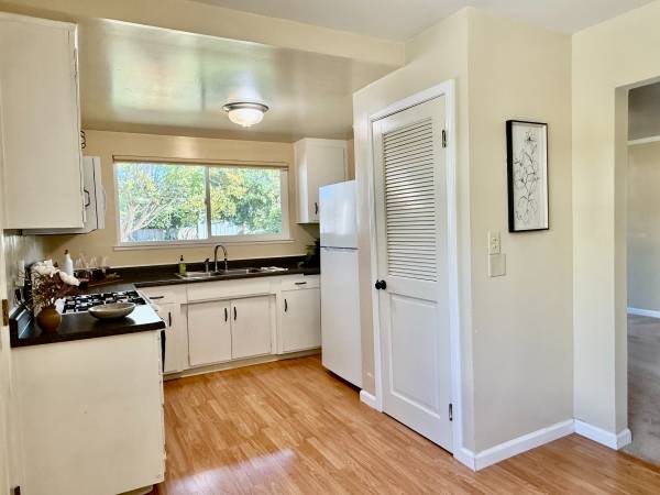 Charming well-maintained home in Northwest Santa Rosa with 3 beds, 2 baths, nice kitchen with gas range, large pantry and includes refrigerator. Enjoy central heat, heat pump AC and ceiling fans, 2 car garage with storage and includes washer and dryer. Back yard has newer large back patio great for entertaining, raised beds for gardening and numerous fruit trees! Come see all this special home has to offer!