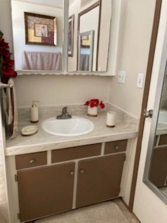 OPEN HOUSE-Sunday, October 5, 1:00-4:00 pm. Don’t miss a rare opportunity to live in Fircrest Mobile Home Park (55+), an affordable piece of paradise located at the western edge of the Laguna de Santa Rosa close to Fircrest Market, Handline, Starbucks, and within walking distance of downtown Sebastopol. This tastefully updated 1964 1100 sq. ft., 2 bdrm/2 bath unit is move-in ready. Enjoy the open living/dining/kitchen floorplan with solid surface countertops, built-in china cabinet and loads of built-in storage throughout. Recent improvements also include new, efficient electric heat and air conditioning, tiled guest bathroom, under-sink reverse osmosis system, laminate floors in kitchen/dining area, and updated kitchen cabinets. Relax on the covered deck or garden in the seven raised vegetable/fruit side beds and the flower beds behind and in front. There is a separate laundry room and extra-large master bedroom with an “angel” bathroom attached. Front landscaping is easy care with a “dry creek bed” and drought-tolerant plants. Aluminum siding does not need to be painted; ditto for the spacious storage shed with windows, electric outlet and lights. The roof coating has a lifetime guarantee. Space rent is one of the lowest at $784/mo. And there’s a pool!
