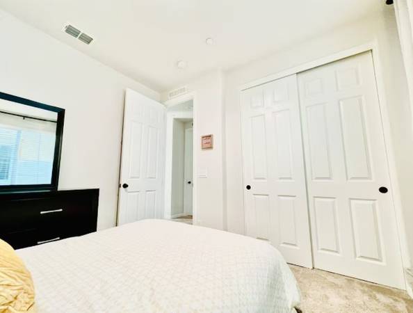 The private upstairs room includes a full-size bed, TV, dedicated desk, strong WiFi, and free parking. Utilities included. Shared clean, spacious bathroom, access to the kitchen, patio, and use of the laundry room.