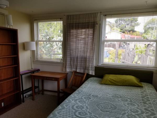 Rent includes monthly housecleaning*, free laundry* high speed internet* and all utilities except PG&E. It will be important to have a roommate who stays organized and communiucates about household necessities with ease and grace. The private bathroom is is periodically and professionally cleaned*.