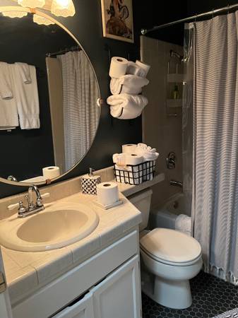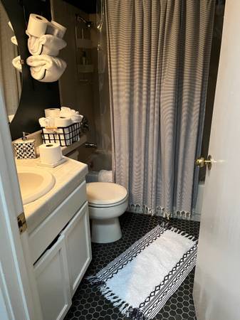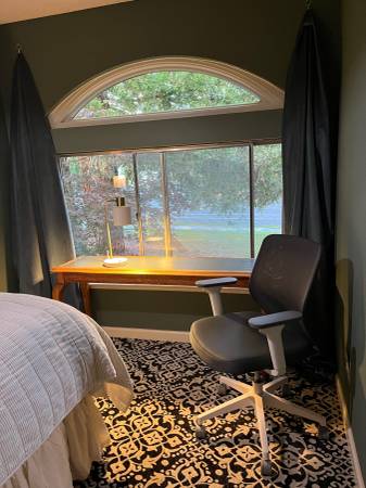 $1275 a month is an average of $42 a day; all utilities and hi-speed wifi included, use of kitchen and dining area, laundry area, powder-room down stairs, recreational club house, two pools, tennis courts, and enchanting pond with occasional ducks, and lots of birds.
