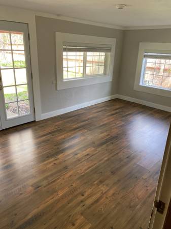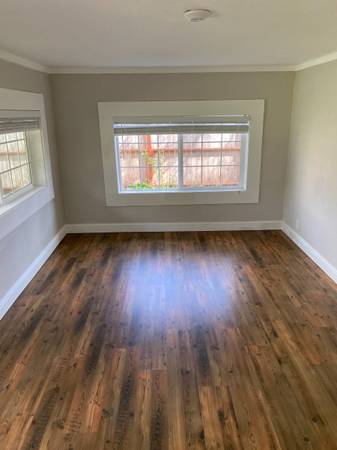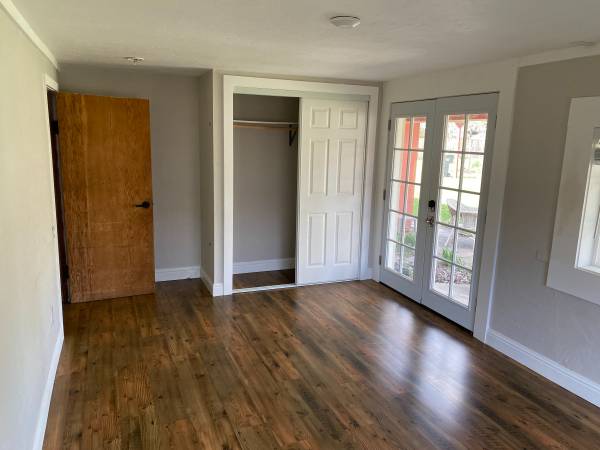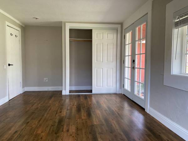 186 sq ft. Bight and clean. Large windows and French doors with direct access to backyard.