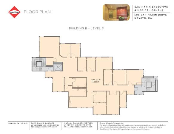 Suite 300B: 4,561+/- sq ft Full private floor, private restrooms, kitchenette, partial cathedral ceilings.