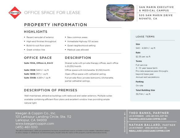 Well-maintained, attractive buildings with redwood and cedar exteriors. Efficient floor plan and excellent window lines providing ample natural light.