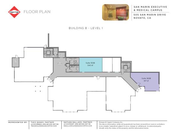 Suite 130B: 540+/- sq ft Office space with kitchenette. $1,250/month