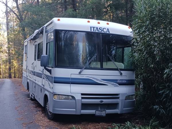 2002 Itasca motor home, 30 ft, 8.1L Chevy motor work horse, chassis very good condition inside & out, under 37k miles, new 14ply tires, new house batteries, house & cockpit all repaired & serviced, $4,000 invested less than 1,400 miles ago, new awning - needs to be re-tensioned, nice all around, smooth ride, pleasant travels, lights, fridge, plumbing, air, heat etc all in working order. Asking