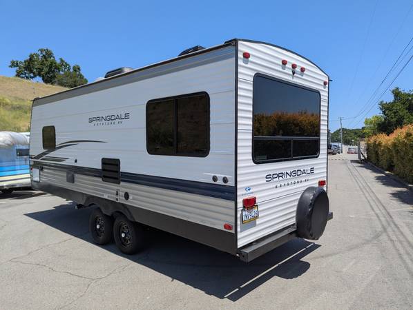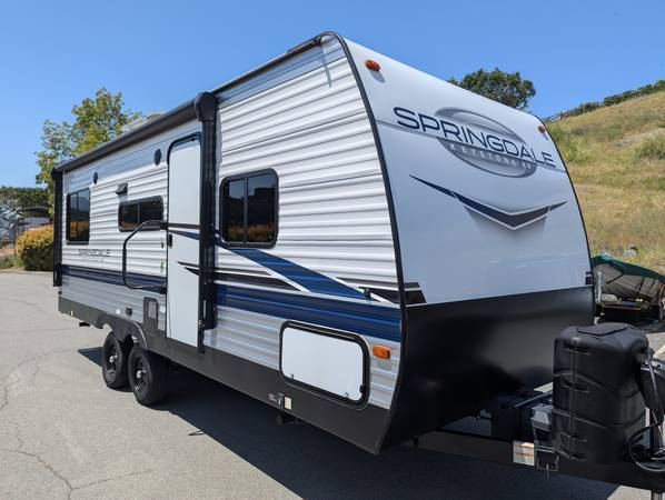 This Springdale 26 ft trailer with rear dinette and jacknife couch is in pristine shape. Its had very little use and less than 500 miles of towing. Originally purchased new by previous owner for his elderly father but never got used, we purchased it last May and used it at Blue lakes in a semi private resort where it stayed all summer. Brought it back to Novato and has been stored in a covered location since.