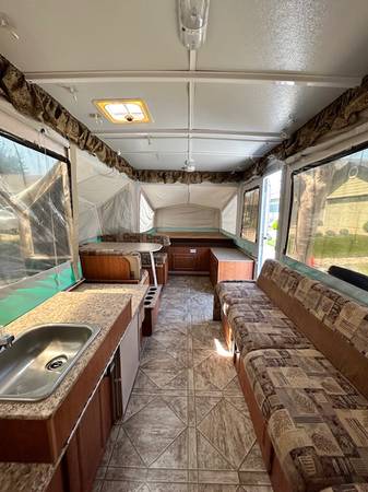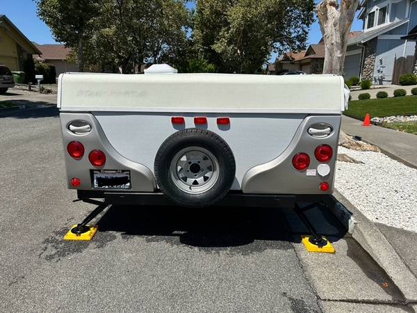 Well maintained 2010 Starcraft Pop Up tent trailer model number 1224. It has 1 king sized bed, 1 queen sized bed, pop out dining area, sink, 2 burner stove that can be used indoors or attached to the outside, refrigerator, lots of inside storage, heater, canopy, electric & manual jacks and propane tank. It can sleep up to 7-8 people. Very spacious inside! Extras are included as follows: 4 electric blankets, portable toilet, foldable table, small microwave, electric fan, pop up garbage can, rugs, 18x24 tarp, carbon monoxide/smoke detector, small air compressor, plus more. Must see!