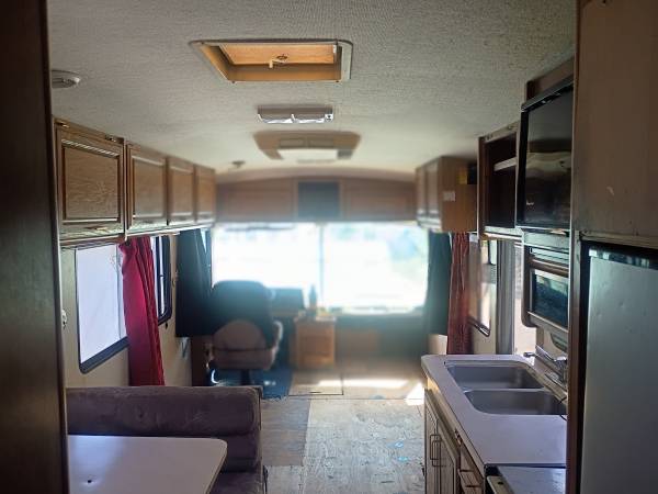 Needs a little TLC and remodeling inside but everything works good refrigerator freezer , oven and 4 burner stove top , microwave , lights electrical 120v and 12 volts system all working perfectly good . No smog needed except , Asking $7000 OBO 7075915729 no late calls no scammers or dreamers