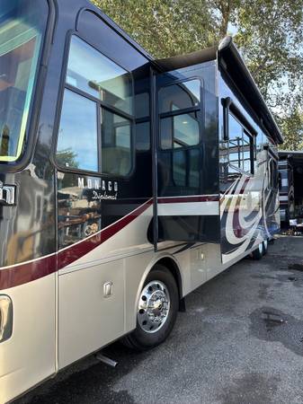 Travel in true luxury with this 2011 Monaco Diplomat 43PKQ a powerful 44 foot diesel pusher that offers the space, comfort, and quality you d expect from a high-end Class A. Built on a Roadmaster chassis and powered by a 400HP Cummins diesel engine with an Allison transmission, it delivers a smooth, confident ride whether you're cruising highways or towing a vehicle behind.