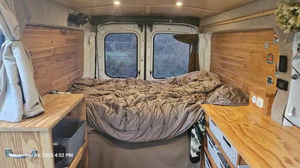 Ecoboost. Oil changed every 5000 with wix filter. Swivel passenger seat. Diesel heater. Havelock wool insulation. 100 watt solar. 100 amp hour battery. Near new Michelin agility tires. Many more features. Camped in 18 degree weather and stayed 65 inside. Bought a newish AWD van.
