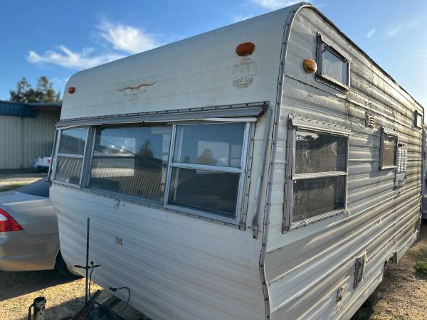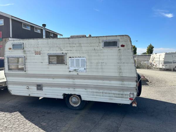 1970s Santa Fe 18 foot camping trailer with bathroom. All the usual issues, see photos. Solid frame, high clearance and 15 inch wheels makes for a great base or remodel. Will consider trades for...