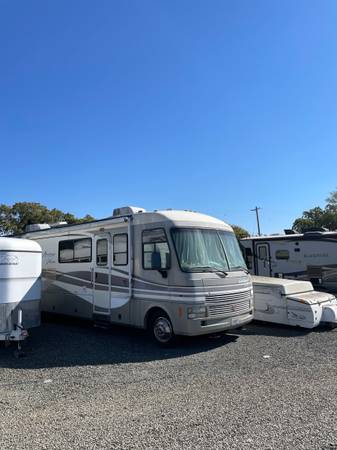 1999 Pace Aero Vista 36-foot motorhome with generator and two slides, V 10 Ford 55,000 miles, runs and drives great, in fair condition. Roof has a few leaks around skylight and vents. everything needs to be lubricated, needs full detail, runs and drives great. Registration on non-op Tires good, everything worked five years ago when we parked it at storage. $8,500 or best offer. Will consider trades for dump truck, suburban, GMC Yukon XL or convertible. Has brand new catalytic converter $2000.