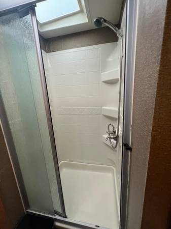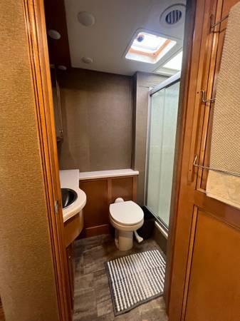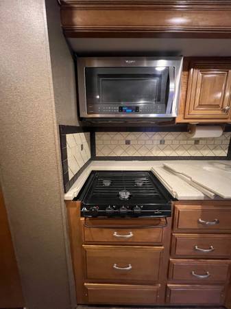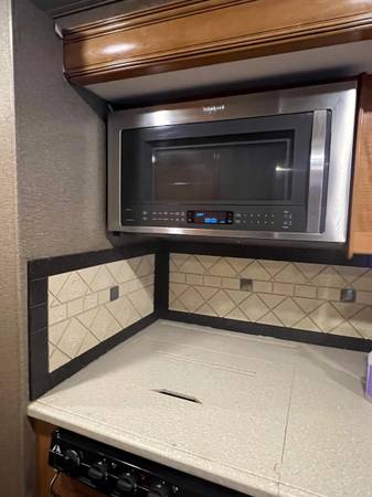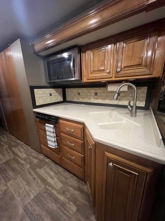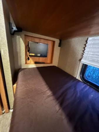 This model is perfect for long road trips or weekend getaways, providing all the amenities and features you need to feel at home on the road. The kitchen is fully equipped with modern appliances, ample storage space, and a large countertop for meal prep. The living area is cozy and inviting, with comfortable seating options and a TV for entertainment.