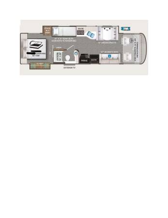 The bedroom offers a peaceful retreat with a comfortable bed, plenty of storage, and a private TV/DVD player for added convenience. The Palazzo 33.3 also includes a dinette area that can easily be converted into an additional sleeping space if needed.