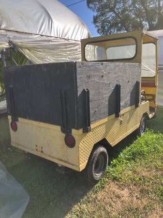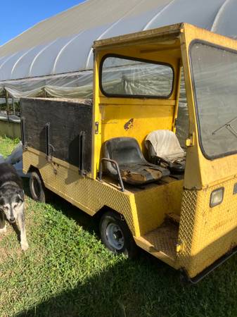 Heavy duty electric UTV. Body in fair condition but these machines work forever. Good for farm or ranch—could be fixed up to be road worthy. Wired for 6 6-volt batteries but easy to reconstruct for larger ones.