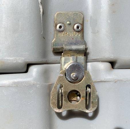 This case shows use but no abuse. It is in very good overall condition with no issues. "Large" is a reletive term. Compared to a suitcase, this is a rather large case. Size is approximately 27" x 26" x 14 1/2" on the outside and approximately 25" x 23.5" x 13.75" on the inside. Has 4 handles and 7 latches that draw the case closed when you turn them.