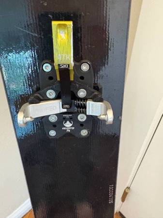 Super wide and hard charging. Skied these in Japan. Just amazing. Mounted with adjustment plates so will fit most any boot with just a few minutes and a star drive. ATK Troffeo bindings. I have these on all my skis. Super sturdy and easy to click into. Amazing in super deep overhead blower pow or 6" of sierra cement. Float above it all