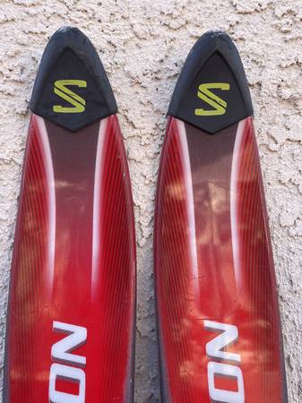 Used only once - Soloman 170 Shape Skis with Soloman 500 Bindings with Scott Assault Poles includes size 8 1/2 Soloman Boots with Boot and Ski Bags and gloves (take all ) for $200.00 firm