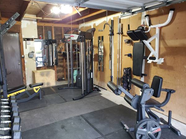 This is a dual weight-stack cable functional trainer by FTX Inspire. I bought it brand new a couple years ago for $2000 and it is still in amazing shape. I still have all of the cable attachments that it came with plus a few more that I purchased separately and they will all be included. The only noticeable wear and tear on it is the weight plates in the stacks have some superficial rust on them, but they could brushed off with a stiff brush. The machine is currently partially disassembled into its two pain parts (as seen in pictures) which it needs to be in order to transport anyways.