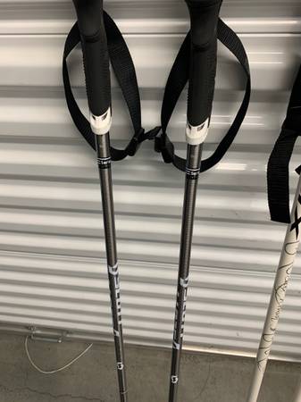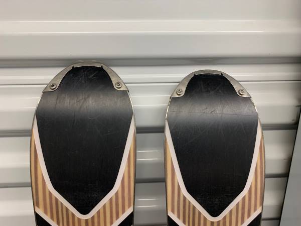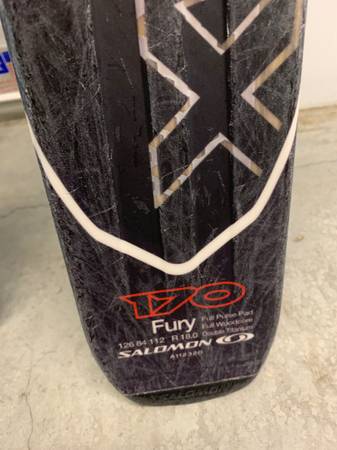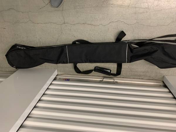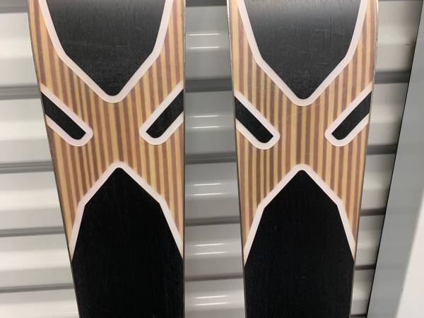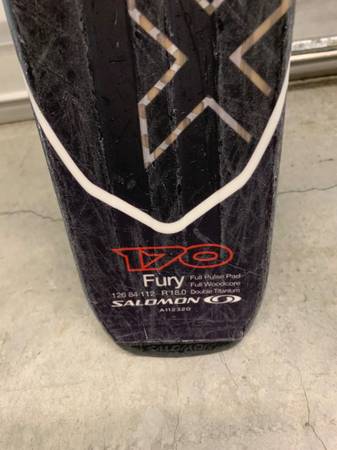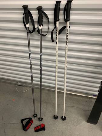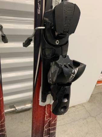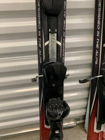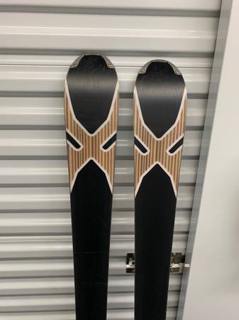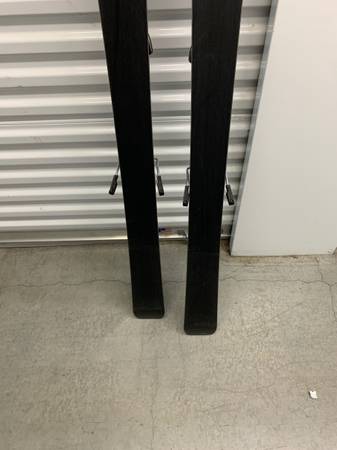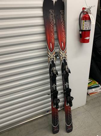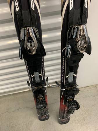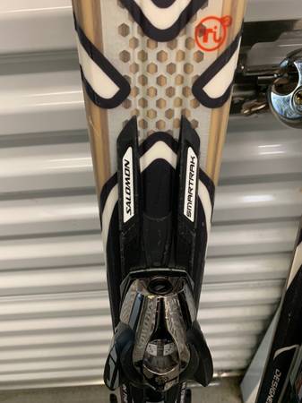 nice pair of high end salomon skis and salomon binings in a new carry case with 2 sets of poles