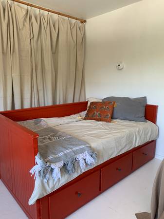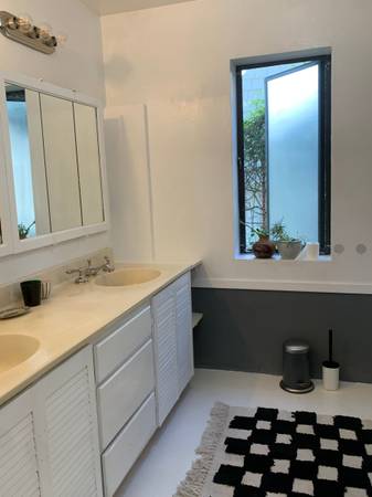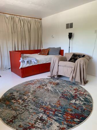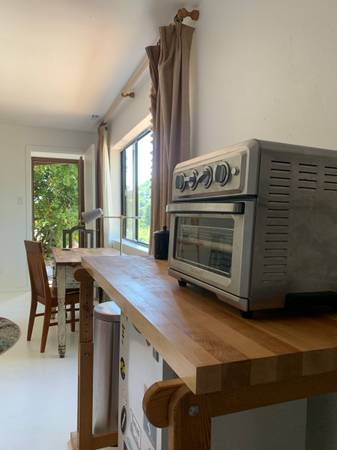 The room was initially set up as a live-in artist studio, but serves equally well as a stand-alone apartment. Kitchenette can be included in the room (complete with countertop dishwasher), or, depending on your needs and our compatibility, common spaces above can be shared with host, including full kitchen.