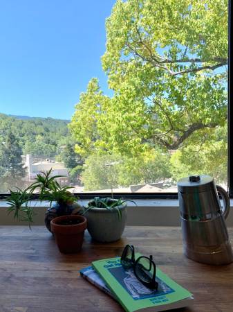 This is a partially-converted ground-floor bedroom of a hillside home. It has views for days, incredible natural light, private bathroom, dedicated entrance, outdoor seating area with view, appliance kitchenette and excellent WiFi. Twin bed that converts to a king.Laundry in the building.