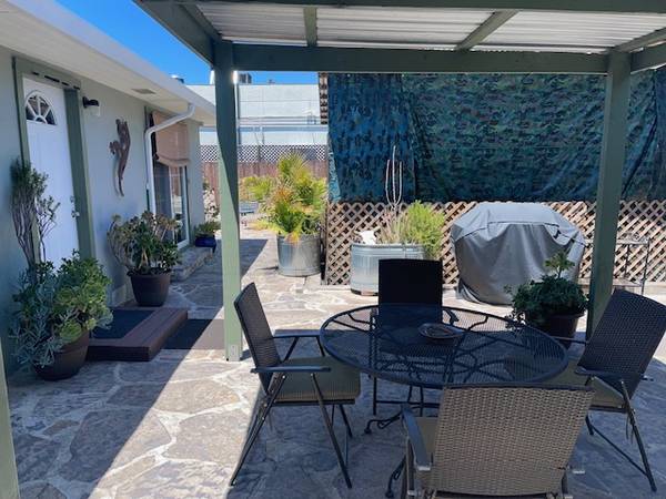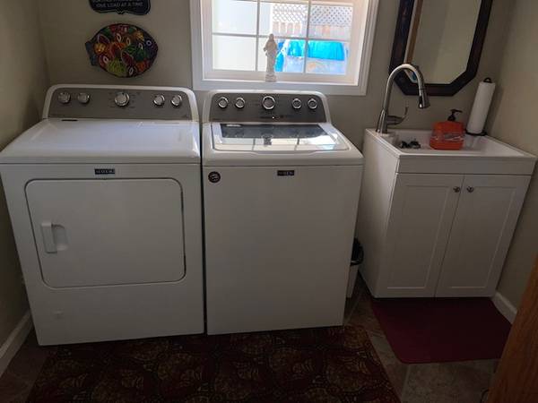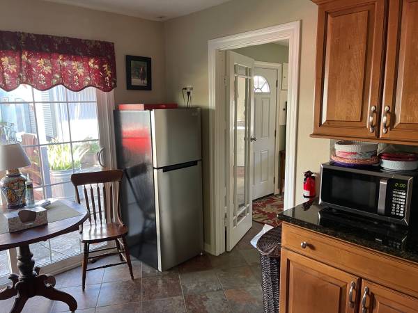 Backdoor Opens straight into hallway to washer and dryer and Your Bathroom door , the kitchen the other end of hallway.
