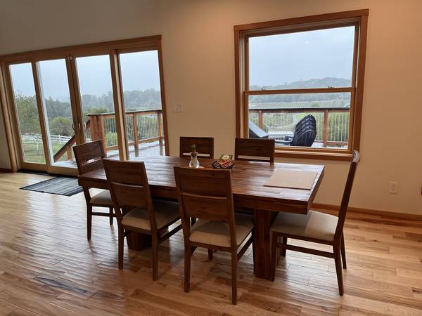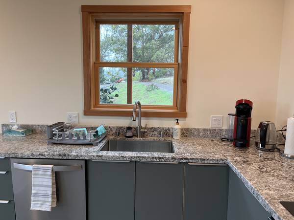 Charming and elegant 1,200 sq ft home on a peaceful 5-acre property, just 10 minutes from downtown Napa. The spacious lower level includes a modern open kitchen, a comfortable living area, a separate laundry room and a full bathroom with bath. Upstairs are two cozy bedrooms (queen size bed) and another full bathroom with a walk-in shower. Enjoy the serene surroundings and views from the large outdoor deck — perfect for relaxing or entertaining.