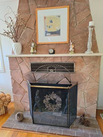 Hardwood floors throughout. Large Living room with floor to ceiling fireplace. (decorative only.)