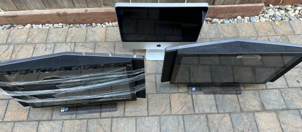 The XPS with the cracked display does not have a power supply or harddrive. The XPS without a cracked display does not power on. The iMac turns on but has no OS installed