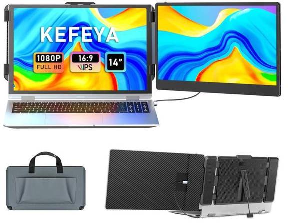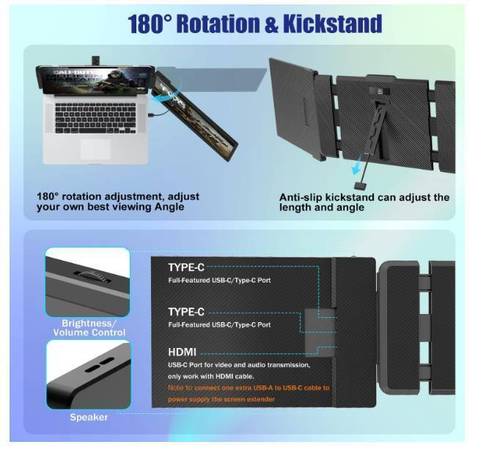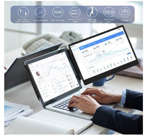 Laptop Screen Extender, 14" FHD 1080P IPS Laptop Monitor Extender Dual Screen, Portable Monitor for Laptops 13-17" with USB-C/HDMI Port, Plug n Play for Windows/Mac/Android/Switch/PS5