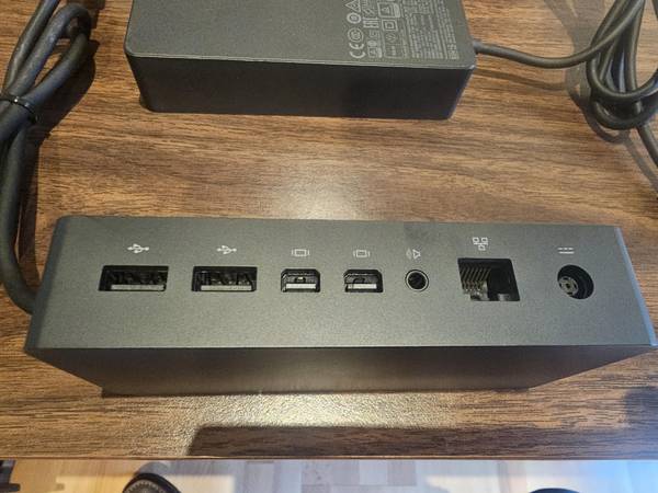 The Microsoft Docking Station is a versatile accessory designed specifically for Microsoft Surface Pro 3, 4, 5, 6, and 7 models. This black docking station features various ports including Audio Out, Mini DisplayPort, Ethernet (RJ-45), USB 3.0, and USB-C, providing seamless connectivity to enhance your laptop's capabilities. Made from rigid plastic and utilizing passive cooling, this docking station ensures a stable and cool environment for your device while adding built-in USB ports for added convenience. Perfect for expanding your laptop's functionality and compatibility.