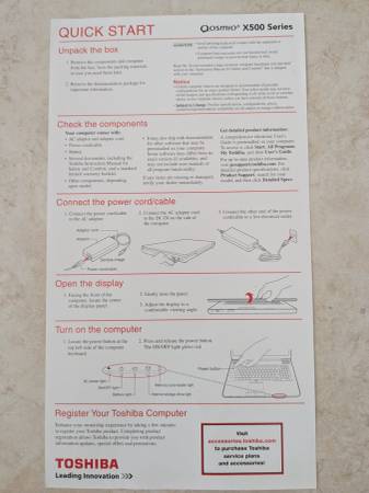Toshiba Qosmio X 500 , 18.4-in screen in an excellent conation, just need new battery. Call Al .