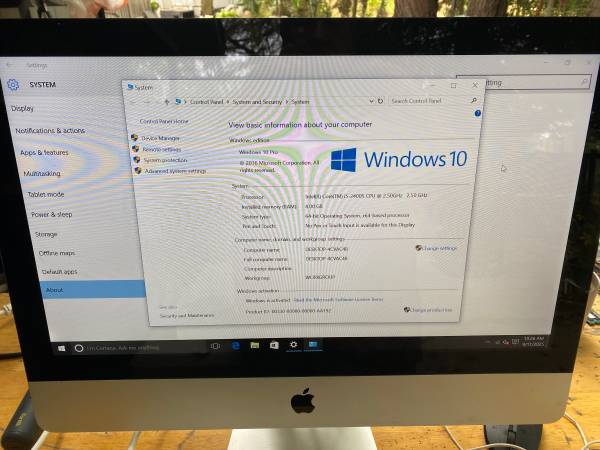 An older iMac computer running activated Windows 10 Pro, used as a school study computer. Pick up in Sebastopol