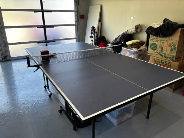 2 year old table tennis (Ping Pong table) with four bats and some balls. Table and net is in perfect condition.