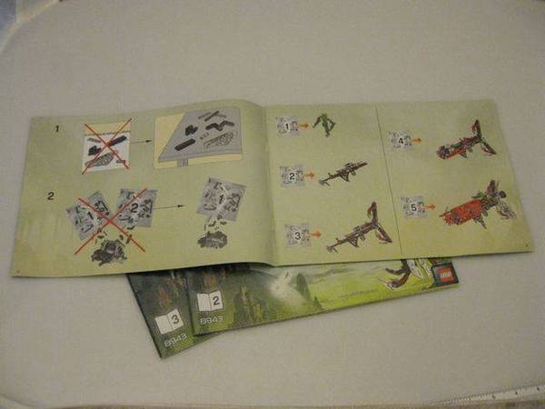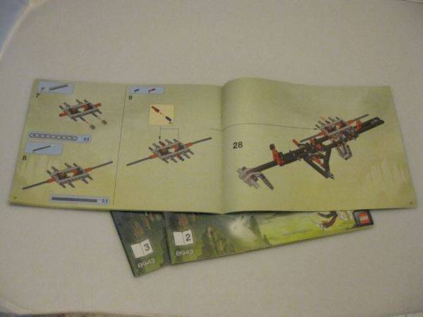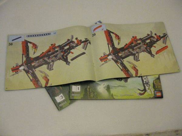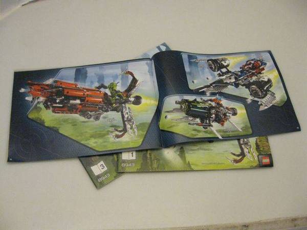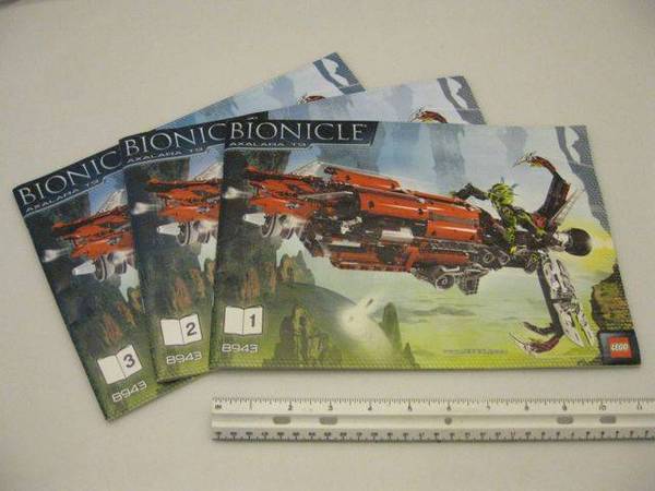 Like new 3-volume set of manuals provides full-color, step-by-step sequence for constructing the 693-piece LEGO 8943 battlecruiser Lewa Nuva. The Lego play set by Bionicle Battle Vehicles is so complex, with its dual Midak Skyblasters and tri-arms w/ lasers, it needs 3 volumes – 161 pages - to morph the brick set into the exciting battleship. It’s available for local pick-up in San Rafael, with cash, Venmo, or PayPal.