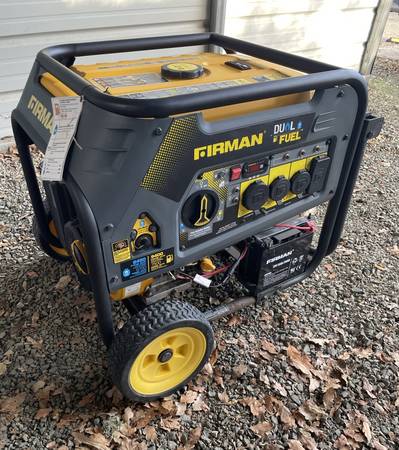 Firman duel fuel gasoline or propane generator. Only 30 hours total use. Starts easily, runs great and has full output. I have purchased a 13,000-watt generator to run my entire house so am selling this one. Switches effortlessly between propane or gasoline while running. No need to shut off power to pour gasoline in a hot generator when the tank gets low. Simply switch it over to propane and fill it up later. Lots of generators for sale these days but here is your chance to get a solid one for a great price. $400. Thanks.